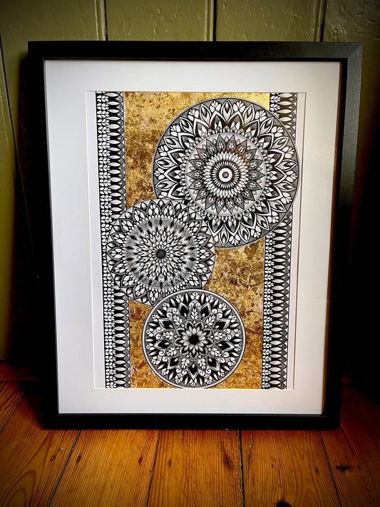 Feyre, Original Hand Drawn A4 Gold Leaf Mandala